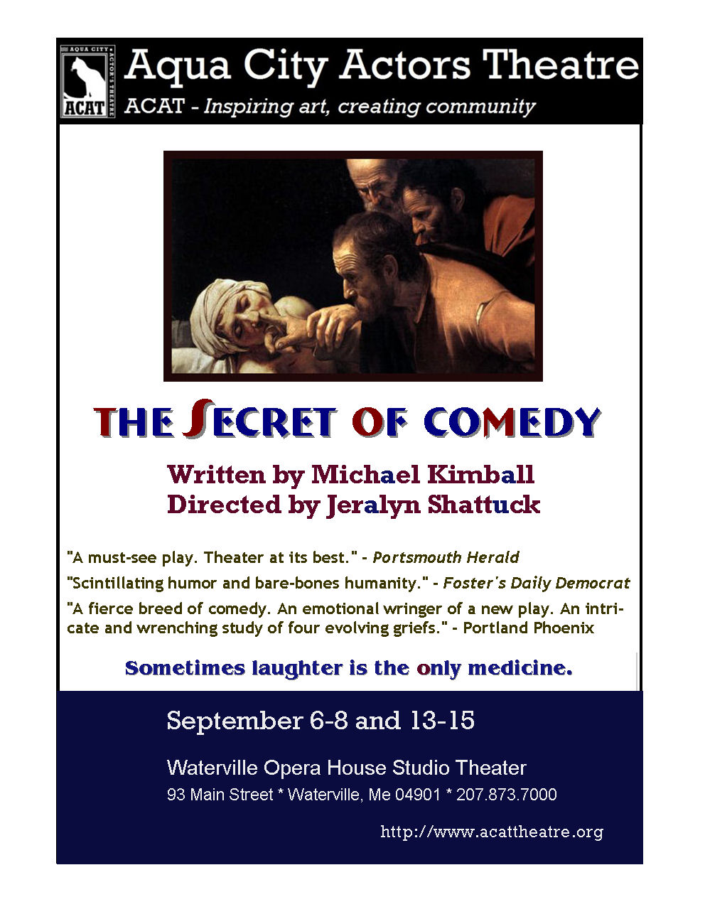 Mike Kimball‘s (Popular Fiction, Scriptwriting) play The Secret of Comedy will run for two weekends (September 6-8 and September 13-15) at the Waterville Opera House, 93 Main Street, Waterville, ME. Tickets and information: 207.873.7000.