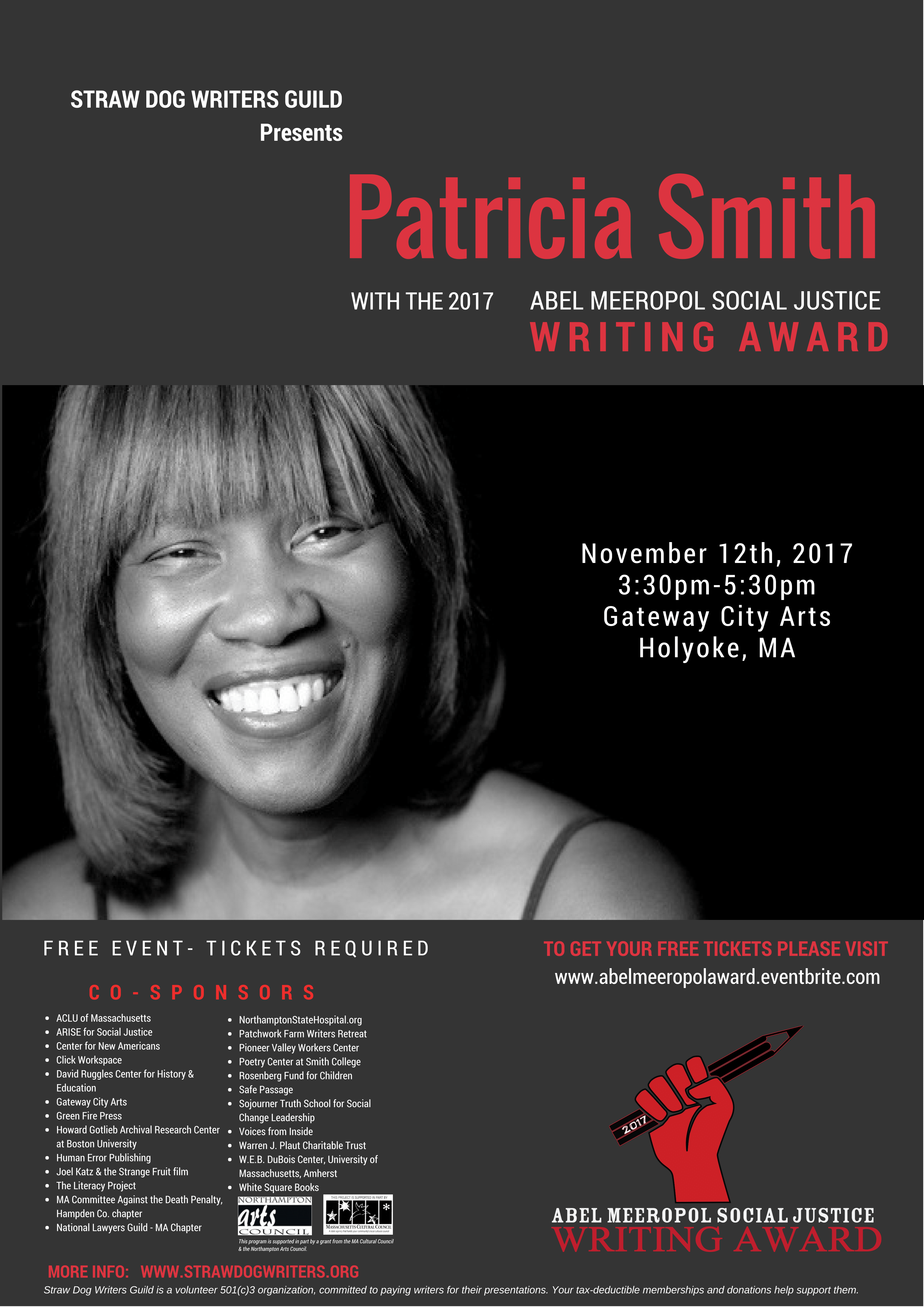 Ellen Meeropol‘s (Fiction, W’06) third novel, Kinship of Clover, was selected as a Great Group Reads for 2017 by the Women’s National Book Association. Ellen is also pleased to announce that Straw Dog Writers Guild will present the Abel Meeropol Social Justice Writing Award to Stonecoast’s own Patricia Smith at a ceremony in Holyoke, MA, on November 12. Details at http://www.strawdogwriters.org/abel-meeropol-award.