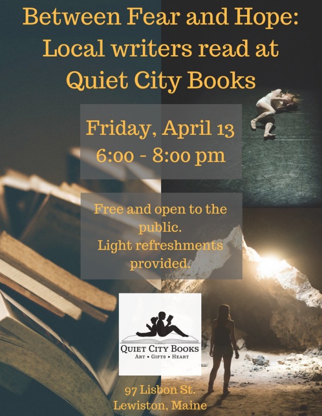 On April 13th from 6:00-8:00 p.m., Quiet City Books in Lewiston, Maine, will host “Between Fear and Hope: Readings from Local Writers.” Among the readers are Stonecoast alum Josh Gauthier (Popular Fiction, S’17), and graduating students Meredith MacEachern (Popular Fiction) and Anthony Marvullo (Creative Nonfiction). The event is free and open to the public. See the Facebook event here.