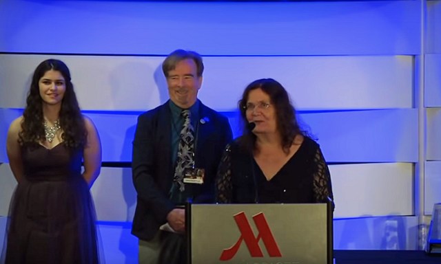 Jim Kelly’s (Popular Fiction) new existential starship novelette, “Grace’s Family,” was published last month on Tor.com.  Also in May, Jim had the honor of introducing his friend and longtime editor, Sheila Williams, at the Science Fiction Writers of America’s Nebula Awards Ceremony. Sheila won the Solstice Award, which acknowledges “individuals who have had a significant impact on the science fiction landscape.” In reprint news, not only did Jim write the introduction and the afterword to the just published anthology A Fistful of Dinosaurs, but he contributed the oft-reprinted “Think Like A Dinosaur” to the table of contents. His novelette “Men Are Trouble” will appear in the forthcoming aliens-on-Earth anthology Not One Of Us from Prime Books. His Hugo-Award-winning “Ten to the Sixteenth to One” will appear soon in the international digital magazine The Short Story Project based in Israel. His story “The Promise of Space” will be published in China by Guangzhou Blue Ocean Press in an as-yet unnamed anthology aimed at the high school and university market.