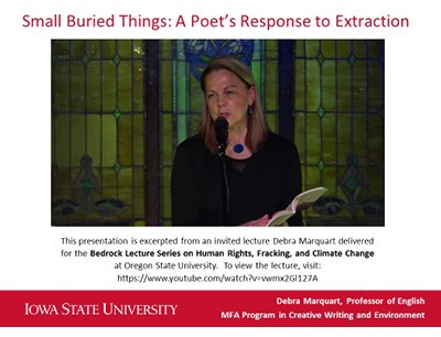 Debra Marquart’s (Creative Nonfiction, Poetry, Writing for Social Change) short fictions “This New Quiet” and “Dylan’s Lost Years” were included in New Micro: Exceptionally Short Fiction, co-edited by James Thomas and Robert Scotellaro and published by WW Norton, available in August 2018. Her poem “Even on a Sunday Drive” was a finalist in the 2017 Steve Kowit Poetry Prize and was published in the San Diego Poetry Anthology in March 2018. Also, Debra’s video poetry performance, “Small Buried Things: A Poet’s Response to Extraction,” was part of the Bedrock Lecture Series, organized by Oregon State University. The eighteen-part video lecture series was submitted as evidence to the Permanent Peoples’ Tribunal on Human Rights, Fracking, and Climate Change, an international tribunal that, in May of 2018, deliberated the global effects of fracking on human rights, the environment, and climate change.