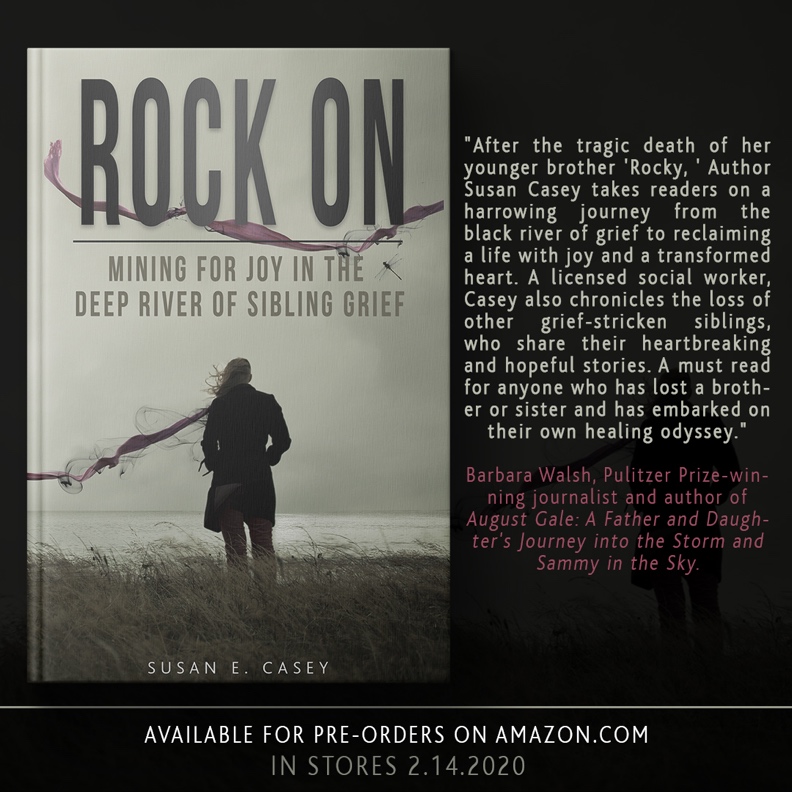 Susan Casey’s (Fiction, W’10) book Rock On: Mining for Joy in the Deep River of Sibling Grief is being released on February 14, 2020. The book launch is at the Frontier Café on February 15th from 6:00-8:00 p.m. Links to register here and here.