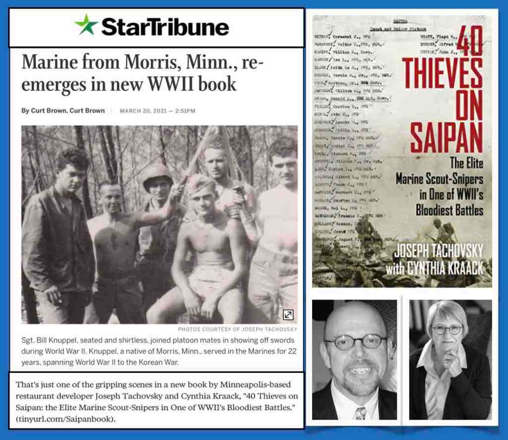 Cynthia Kraack (Fiction, W’10) and co-author Joseph Tachovsky were featured on C-Span Book TV Saturday, March 6, to discuss 40 Thieves on Saipan. The Minneapolis Star Tribune ran a story about Bill Knuppel, one of the principal Marine Scout Snipers in the platoon.