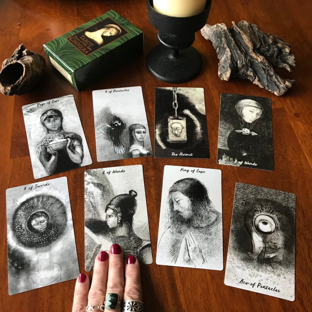 Nitasia Roland (Popular Fiction, W’19) designed an indie/artisan Tarot deck called Tarot Chimera in the fall of 2021 and wrote the non-fiction guidebook Arcana of Odilon Redon, both published under (and available from) her small press imprint, Urania Press. Tarot Chimera, funded via Kickstarter in 2021, features the enigmatic lithographs of the French symbolist artist Odilon Redon, digitally enhanced and formatted to tarot: an 88-card deck alongside a softcover guidebook featuring full-page chimeric interpretations infused by Redon’s symbolic and dream-infused world…. spirited, uncanny, nightmarish, and stunningly beautiful.
