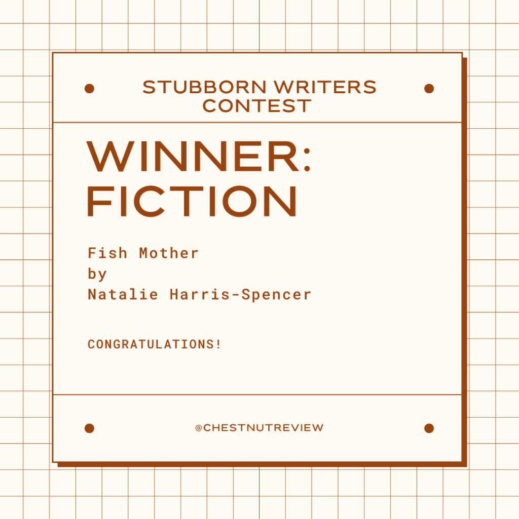 Natalie Harris-Spencer (Fiction, S’21) is delighted to share that she has been chosen as the winner of the 2022 Chestnut Review Stubborn Writers Contest. Her winning story, “Fish Mother,” will appear in the January issue. More details to follow.