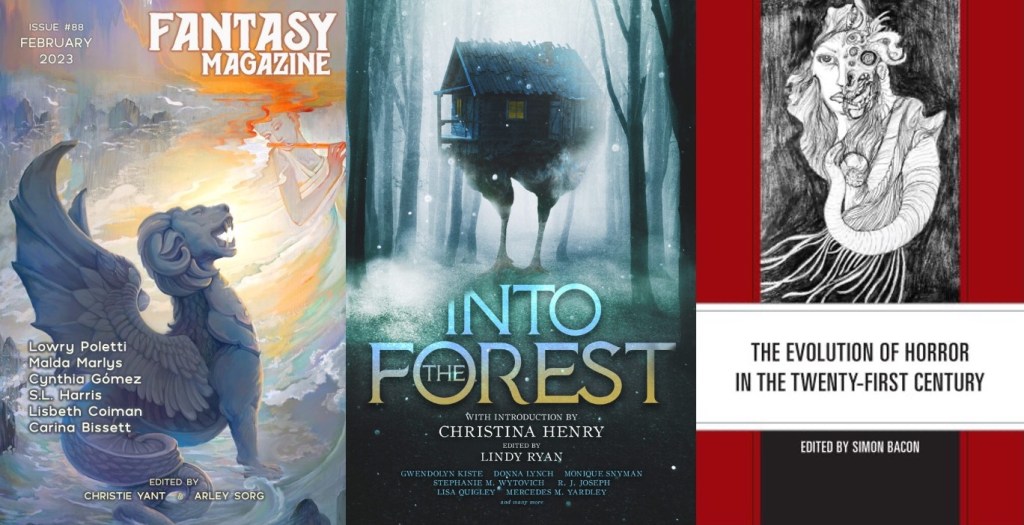 Carina Bissett (Popular Fiction, S’18) is pleased to announce the publication of her poems “Necrotic Ambrosia” in Space and Time Magazine (December 2022) and “The Mermaids of Magonia” in Fantasy Magazine (February 2023). In November, her story “Water Like Broken Glass” appeared in the anthology Into the Forest: Tales of the Baba Yaga (Black Spot Books). In the realm of nonfiction, her essay “The Future of Horror: Evolution or Revolution?” is now available in Horror in the Twenty-First Century and Beyond, edited by Simon Bacon (Lexington Books, March 2023).