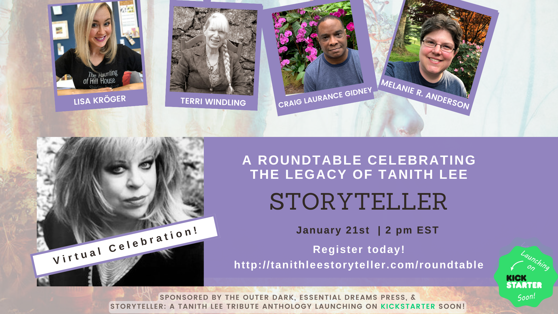 Julie C. Day (Popular Fiction, S’12) is excited to announce a virtual roundtable Storyteller: The Legacy and Work of Tanith Lee will be held on January 21st. The event is both a celebration of Tanith Lee’s work and an exploration of her influence on some of today’s most beloved authors. It’s also a lead up to the Kickstarter for the upcoming Storyteller: A Tanith Lee Tribute Anthology (Essential Dreams Press) and is cosponsored by Essential Dreams Press and The Outer Dark Collective. Panelists include Melanie R. Anderson, Craig Laurance Gidney, Lisa Kröger, and Terri Windling with moderator Julie. Though the event is free, preregistration is required. All who RSVP will have their name entered into the event’s two drawings! (Note: You must be present to win.)
