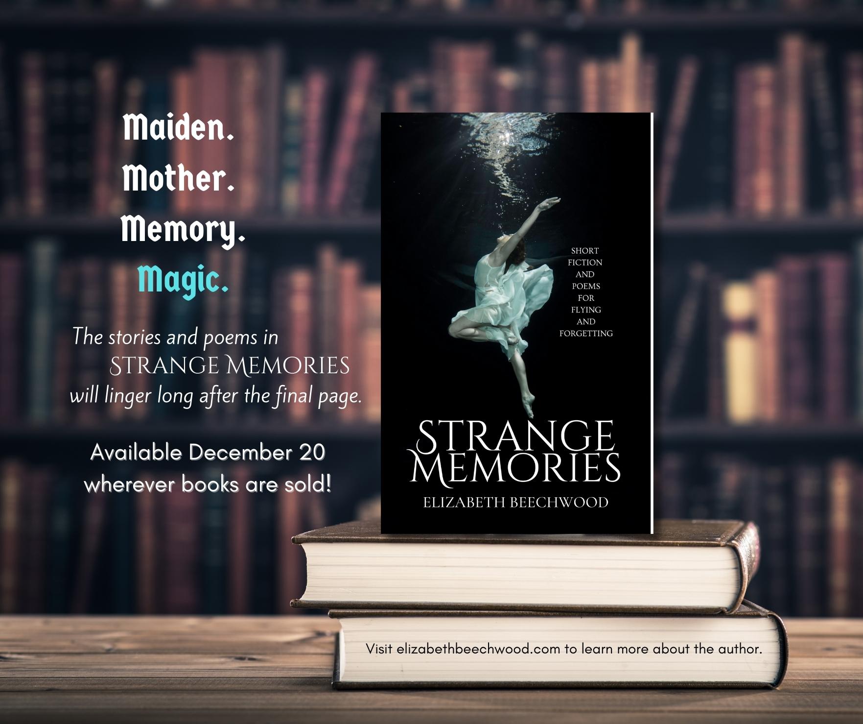 Elizabeth Beechwood (Popular Fiction, S’14) is pleased to announce the release of her short story and poetry collection, Strange Memories: Short Fiction and Poems for Flying and Forgetting. Cover art, back copy, and editing by Sarah Parke (Popular Fiction, W’15). (She also created this image!)