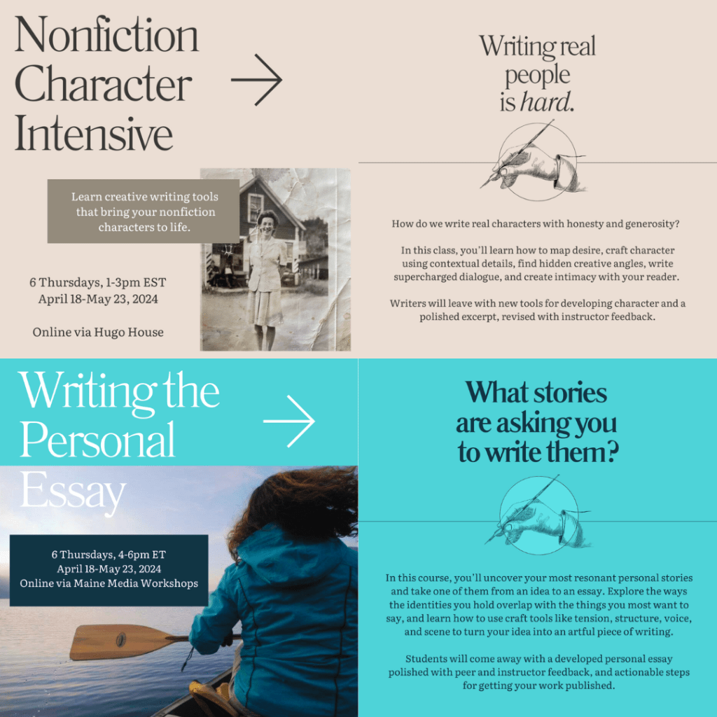 Nina B. Lichtenstein (Creative Nonfiction, S’20) is honored to host four Stonecoast alumni who will read from and talk about the fresh off the press charity anthology Maine Character Energy at Maine Writers Studio’s Literary Salon & Open Mic, April 17th, in Brunswick, ME. Find out more information here. Hope you can join us if you are local! Nina is also thrilled to be invited (back) to the Stonecoast 2024 summer residency to present on “Writing From the Body,” a session filled with fresh ideas, writing prompts, and literary examples about how to mine the treasure chest that is the body for stories.