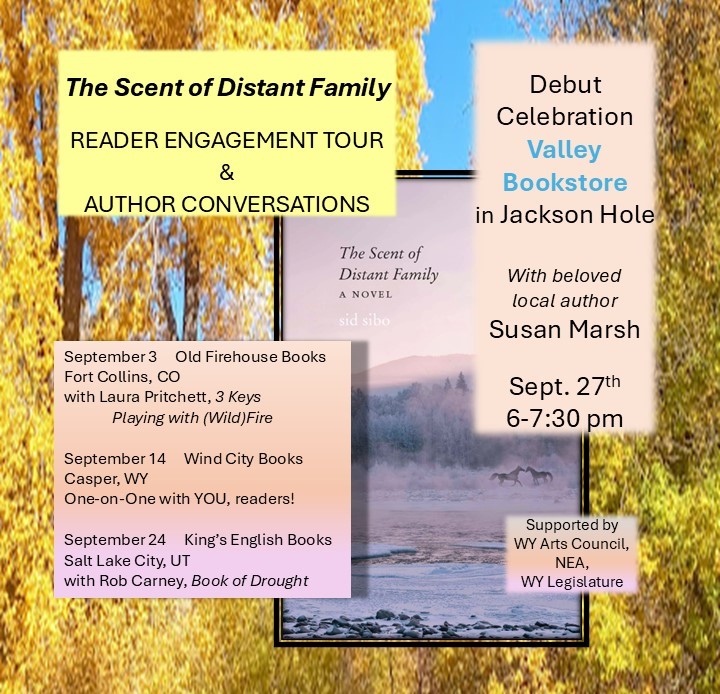 Living on the edge (of a state with few bookstores) means sid sibo (sidney woods, Fiction, W’19) will make a three-state tour in September, supported by a WY Arts Council grant, in conversation with other authors about this first novel, The Scent of Distant Family. Swag will be available courtesy of Stonecoast compadres (Darcy Duda and Kathryn Balteff, also W’19 Fiction grads) who donated artwork and production skills toward the project, which will send all proceeds to animal welfare organizations. Follow sidsibo.com for events updates—October will include Idaho, Montana and more WY appearances.