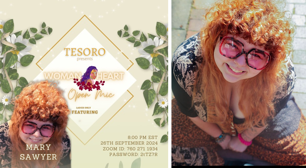Second-semester student Mary Sawyer (Poetry) will be reading at her first poetry feature for Tesoro “Woman Heart” Open Mic September 26th at 8:00 p.m. Standard Time.